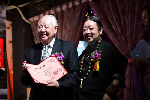 第三届“扶正诗歌奖”获得者诗人洛夫先生正在领奖